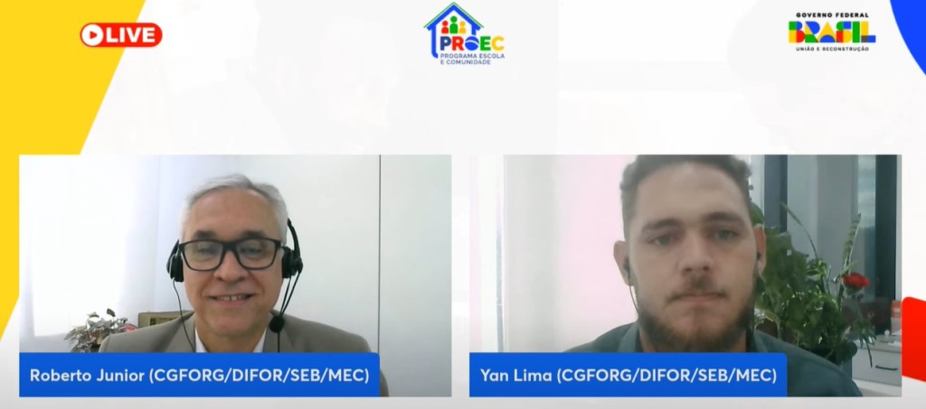 O Ministério da Educação (MEC), por meio da Secretaria de Educação Básica (SEB), abriu o ciclo de 2025 do Programa Escola e Comunidade (Proec). Em webinário transmitido pelo canal