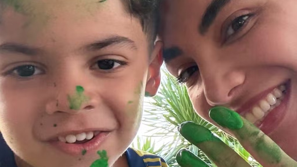 Gabriela Versiani, de 26 anos, compartilhou nas redes sociais, nesta segunda-feira (16), um momento de diversão com Léo, de 5, filho de seu namorado, Murilo Huff,
