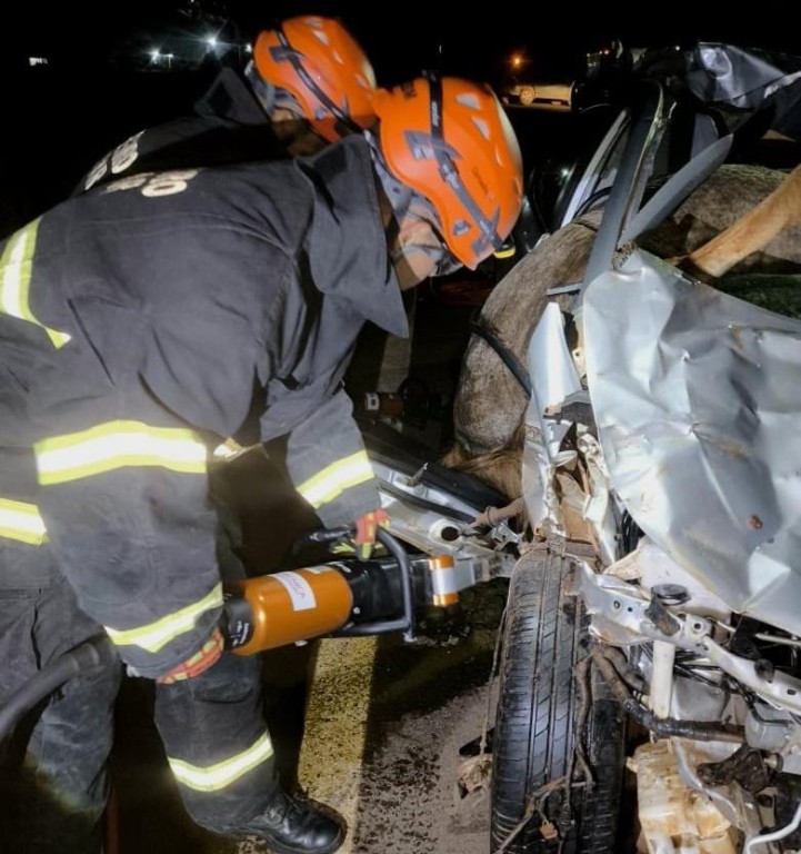 O Corpo de Bombeiros Militar de Mato Grosso (CBMMT) realizou, na noite de sábado (1°.3), o desencarceramento de dois corpos, sendo de um homem e outro de um equino, que ficaram presos às ferragens de um veículo após um acidente na MT-170, em Brasnorte (a 588,5 km de Cuiabá).