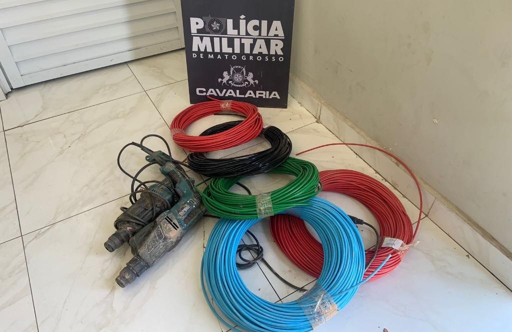 Durante o policiamento tático, os policiais militares flagraram um dos suspeitos, que foi abordado e detido. Já o comparsa fugiu para uma região de mata. As equipes mantêm diligências para localizar o indivíduo. Na ação, foram recuperadas duas furadeiras e diversos metros de fiações elétricas.