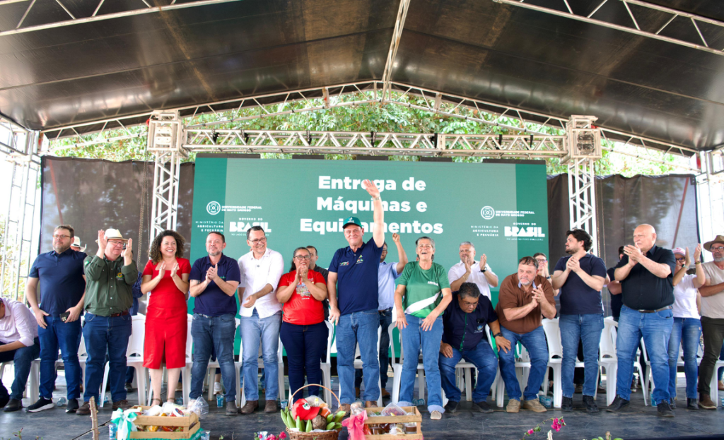 Neste sábado (13), em São José dos Quatro Marcos (MT), o ministro da Agricultura e Pecuária, Carlos Fávaro, realizou uma nova etapa de entrega de máquinas e equipamentos do Programa Estratégico de Fortalecimento Estrutural de Assentamentos Rurais e Sustentabilidade da Agricultura Familiar em Mato Grosso, para comunidades da região Oeste do estado mato-grossense.