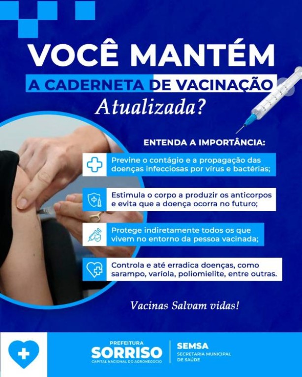 “Muitas complicações de saúde podem ser evitadas com um programa vacinal eficiente e contínuo. Se estiver dúvida se necessita ou não atualizar a carteirinha, basta procurar a unidade de saúde mais próxima ou de referência para que os profissionais avaliem. A vacina é segura, eficaz, gratuita e salva vidas”, finaliza.
